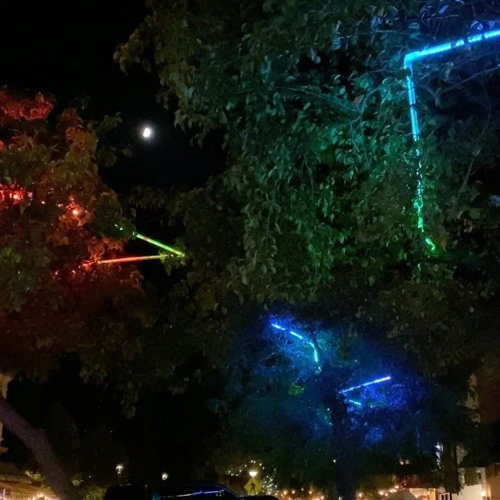 Tree Limns is a public art project threading LED tubes through the trees of a darkened traffic island at the intersection of 4th St and College Ave in Santa Rosa, CA. The lights fill the interstitial space between tree branches and rushing traffic, introducing color and inviting moments of calm in the midst of the hectic urban landscape. Project by Spolia Design/Build. A Pop-Up Creativity Grant from Creative Sonoma. Endorsed by the Art In Public Spaces Committee of the City of Santa Rosa.